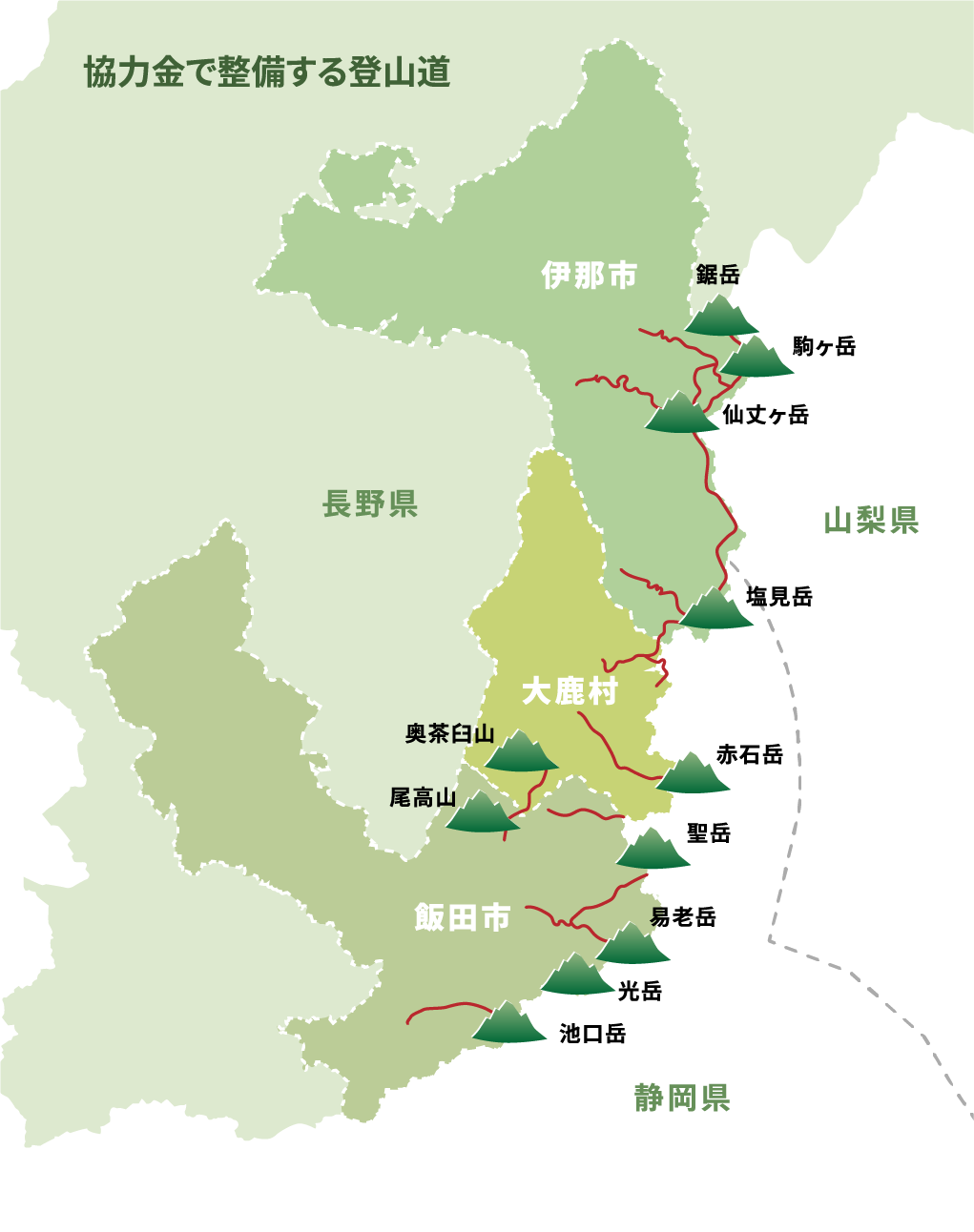そこで、南アルプスの美しい自然を未来につなげていくために、登山者の皆さんにもご協力をお願いする登山者協力金の取組を始めることにしました。